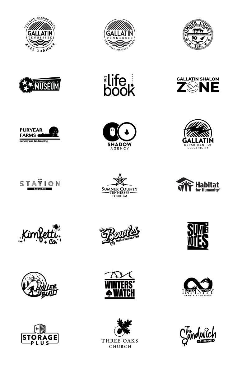 I've had the pleasure of collaborating with clients such as The City of Gallatin, Gallatin Chamber of Commerce, The Gallatin Economic Development Agency, Gallatin Department of Electricity, Sumner County, Tennessee, Sumner County Tourism, The Gideons International, various small businesses, nonprofits, and more.