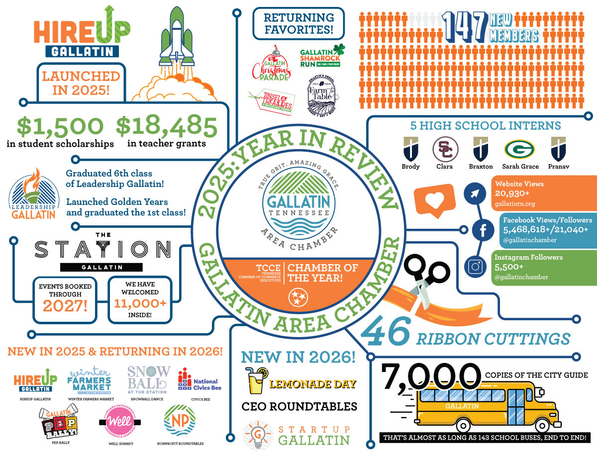 Each year, I design the Chamber’s annual infographic, a visually engaging piece that highlights key achievements and data from the previous year. Below, you’ll see the most recent 2025 Annual Infographic—one of many we’ve created over the years. These projects are a great opportunity to transform analytics into clear, creative, easy-to-digest visual storytelling.